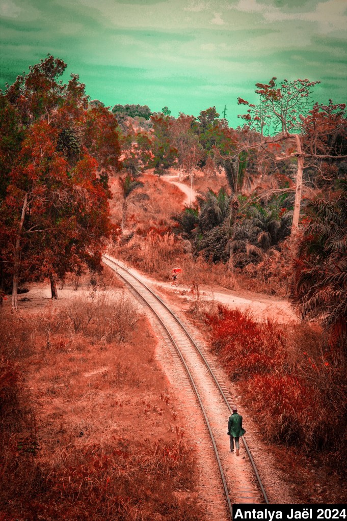 Titre de la série : « Itinéraires (Comme sur des rails, Le chemin, La forêt) » : « Dois-je continuer ce chemin balisé ou plonger dans l’inconnu qui se profile au loin ? Mon avenir sera-t-il confortable ou chahuté ? Marcher sur les rails ou choisir d’autres voies ? J’arrive face au destin. Je perçois des obstacles ; pourrai-je les surmonter ? Je m’interroge. Changer d’horizon ? Dois-je me taire ou dois-je parler ? Dois-je accepter ou dois-je lutter ? Mon questionnement est un vertige. Choisir c’est renoncer. » Photographies extraites d’une série de clichés explorant la notion de chemins et d’itinéraires, la question de l’homme face à la nature, et le principe de l’homme face à son destin. La série évoque les choix auxquels nous sommes tous confrontés et l’importance de ces choix, parfois sans difficulté apparente, parce qu’ils conditionnent notre avenir individuel et collectif © Antalya Jaël