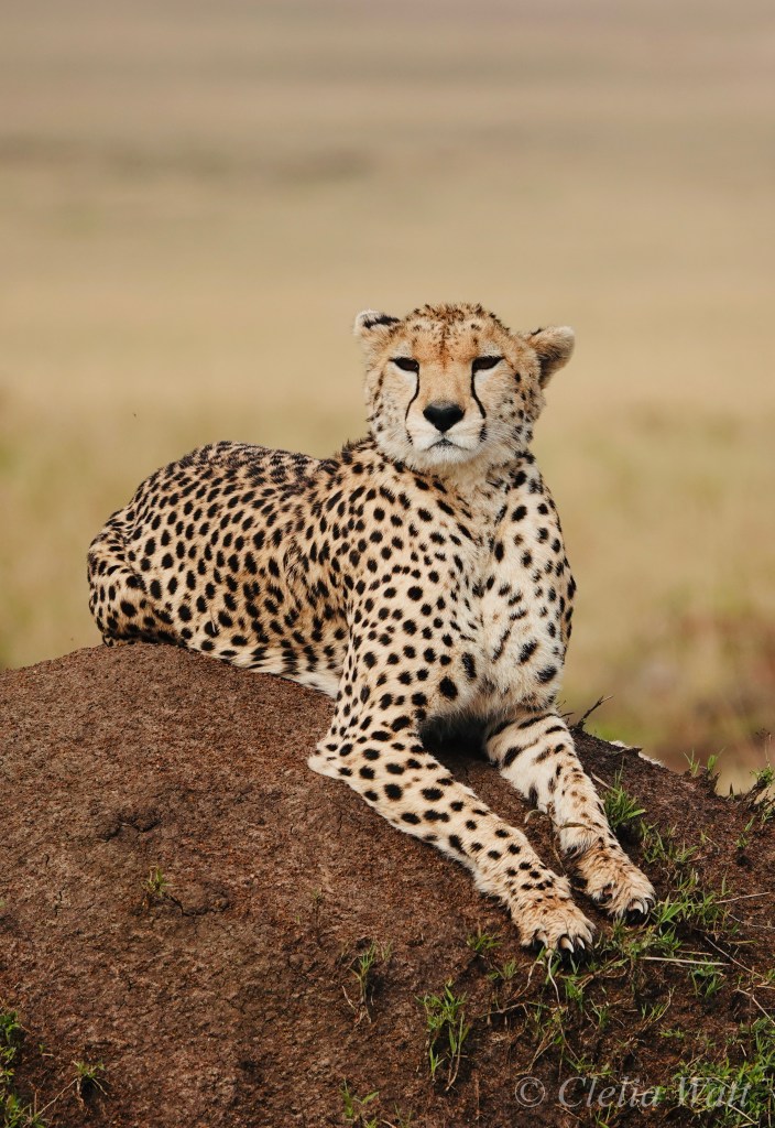 A cheetah stalks its prey in the golden light of dawn, Masai Mara, Kenya © Clelia Watt