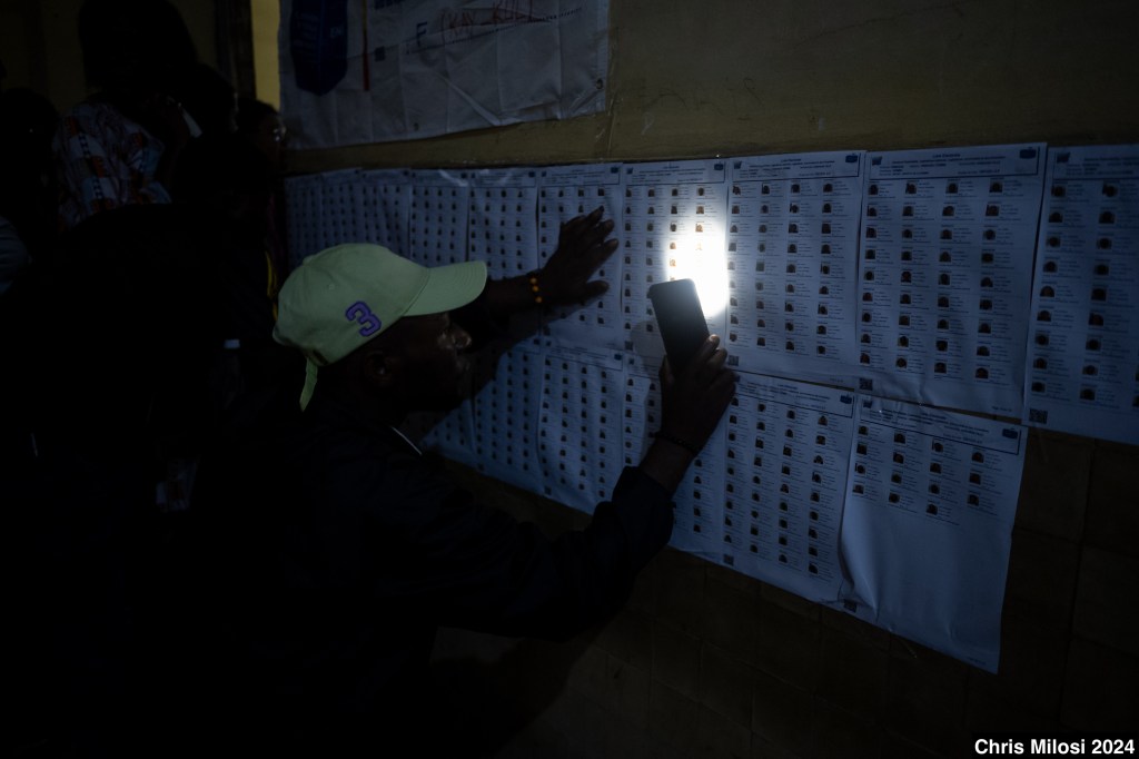 Sous la pluie au coucher du soleil les femmes congolaises continue d’à aller voter. © Chris Milosi